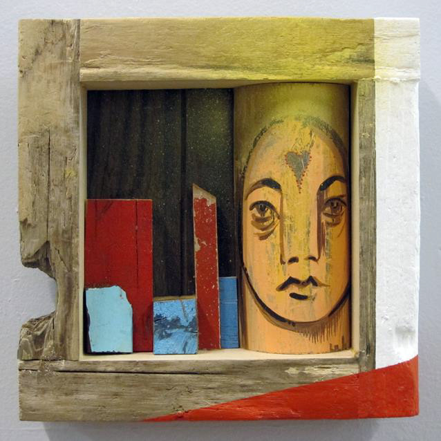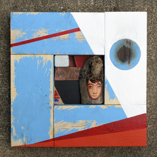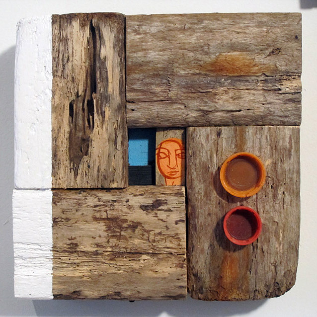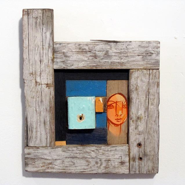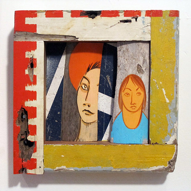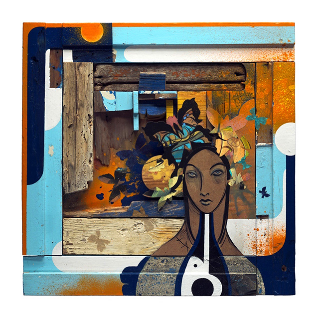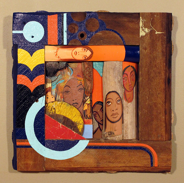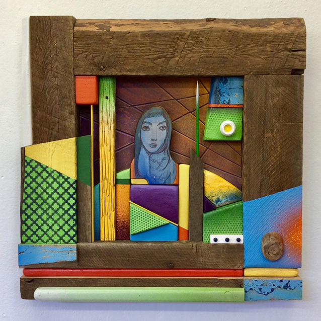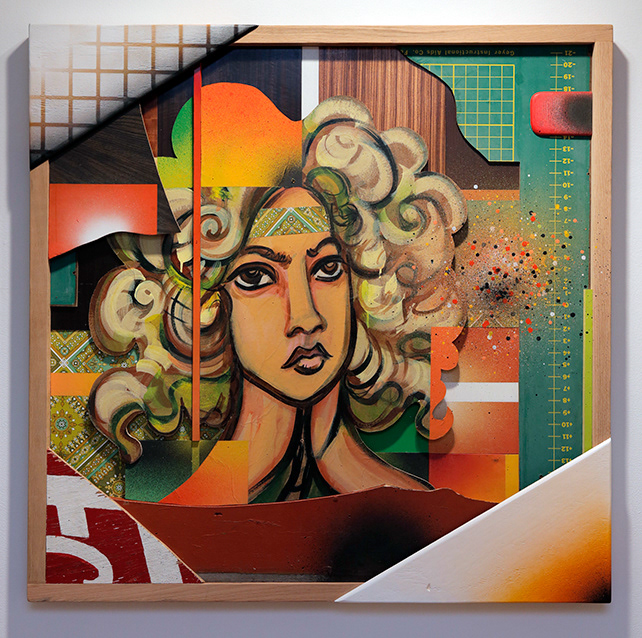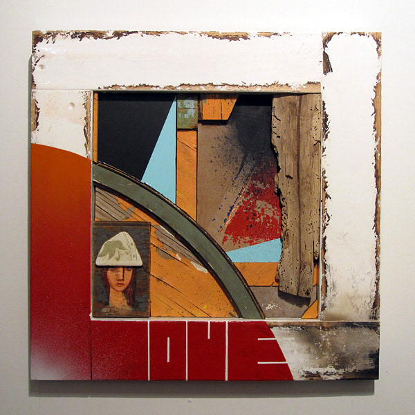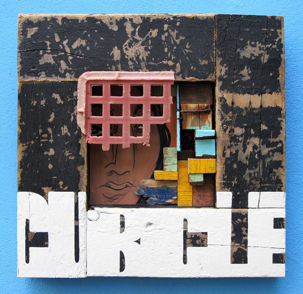 Reclaimed wood, spray paint, sign enamel.