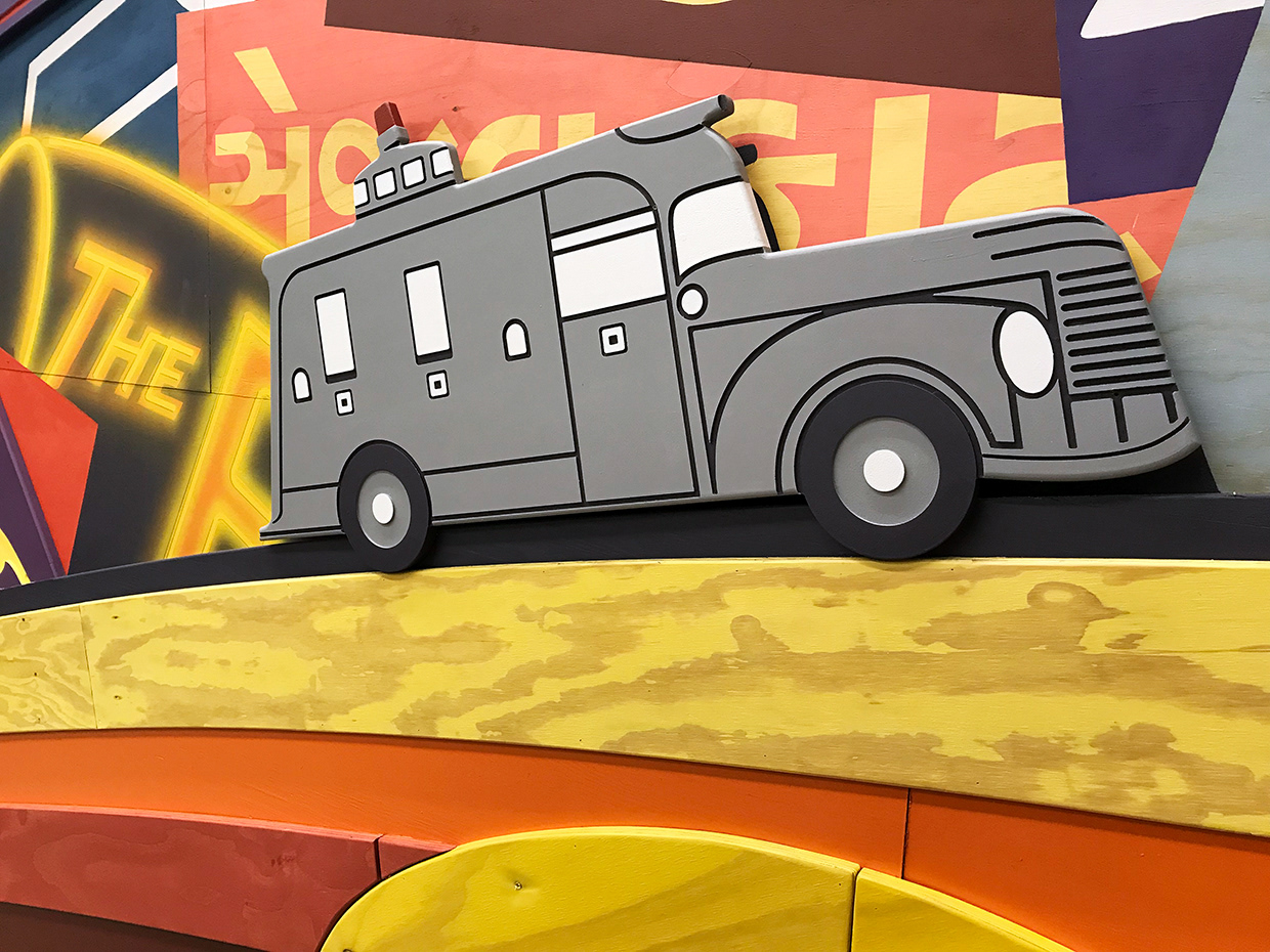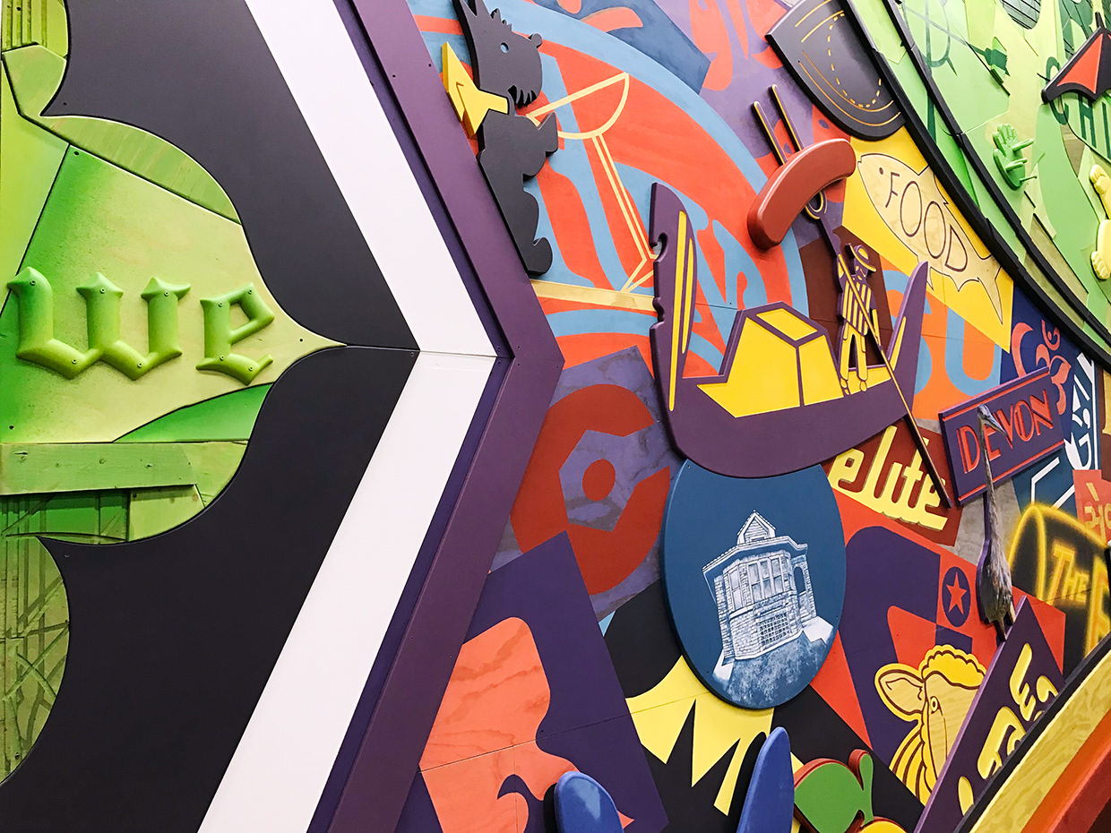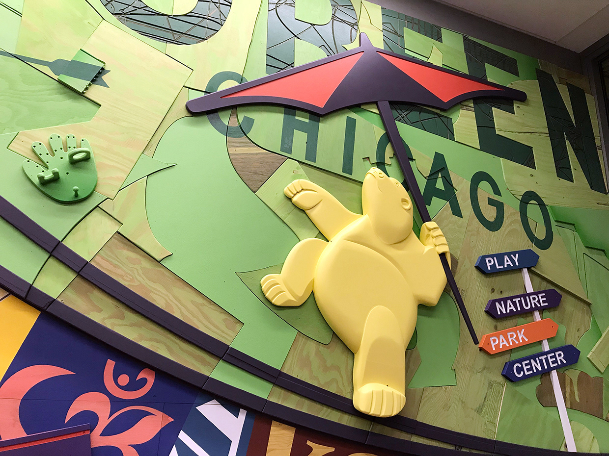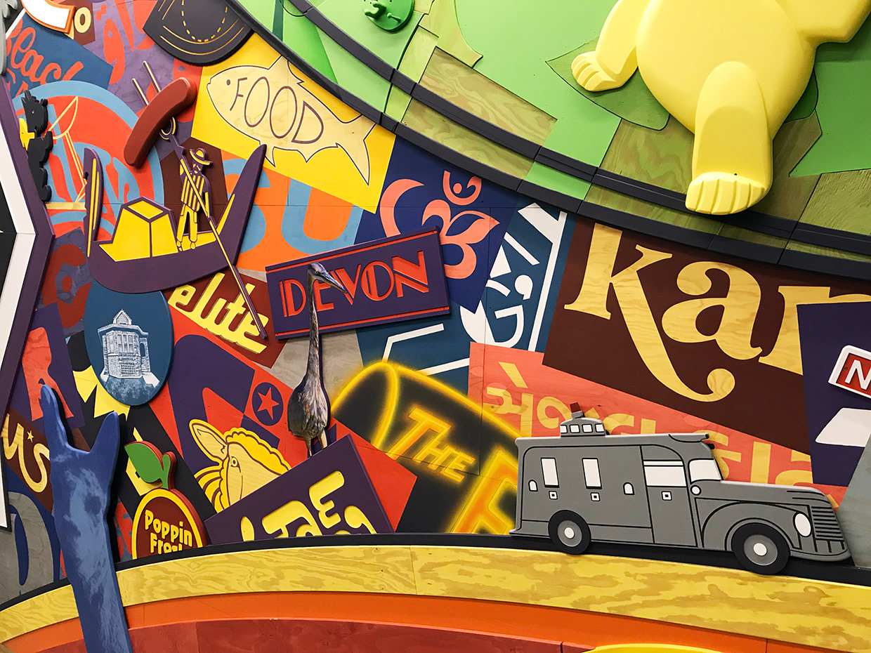 Mixed media mural installation for the new Northtown Branch of the Chicago Public Library in West Rogers Park. Collaboration with Tim Janda, with assistance from Robert Stevenson and Erik C. Harris.