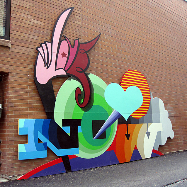 Mural commission for Wicker Park Bucktown Chamber of Commerce's Orange Walls project. This message was inspired by a graffiti artist who wrote "LOVE NOW" around the city of Chicago in the early 90's.